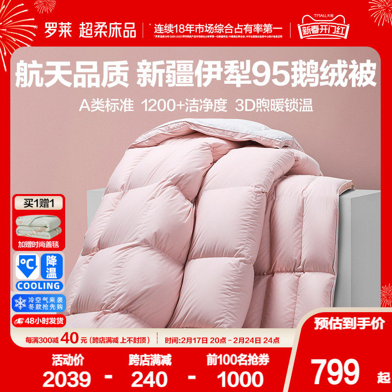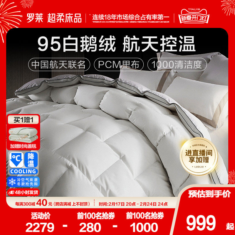 罗莱家纺航天控温鹅绒被春秋被子被芯二合一加厚冬被95白鹅羽绒被