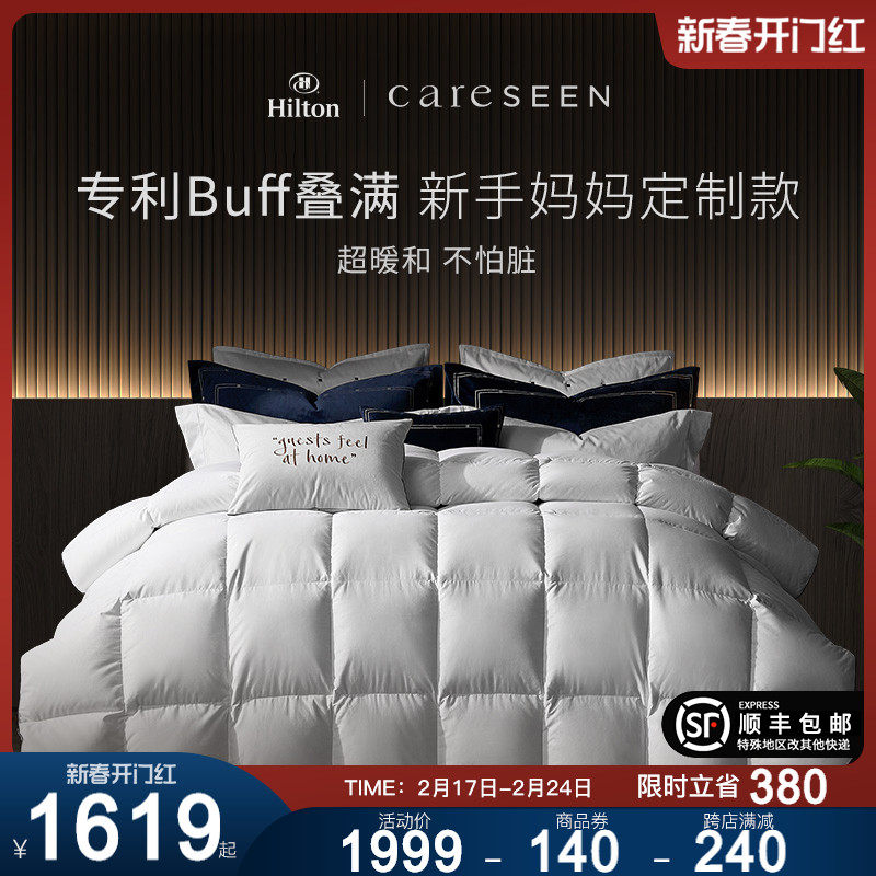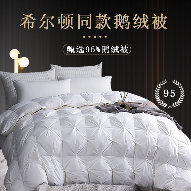 希尔顿羽绒被95白鹅绒被冬被子厚被芯正品酒店加厚全棉锁温防潮