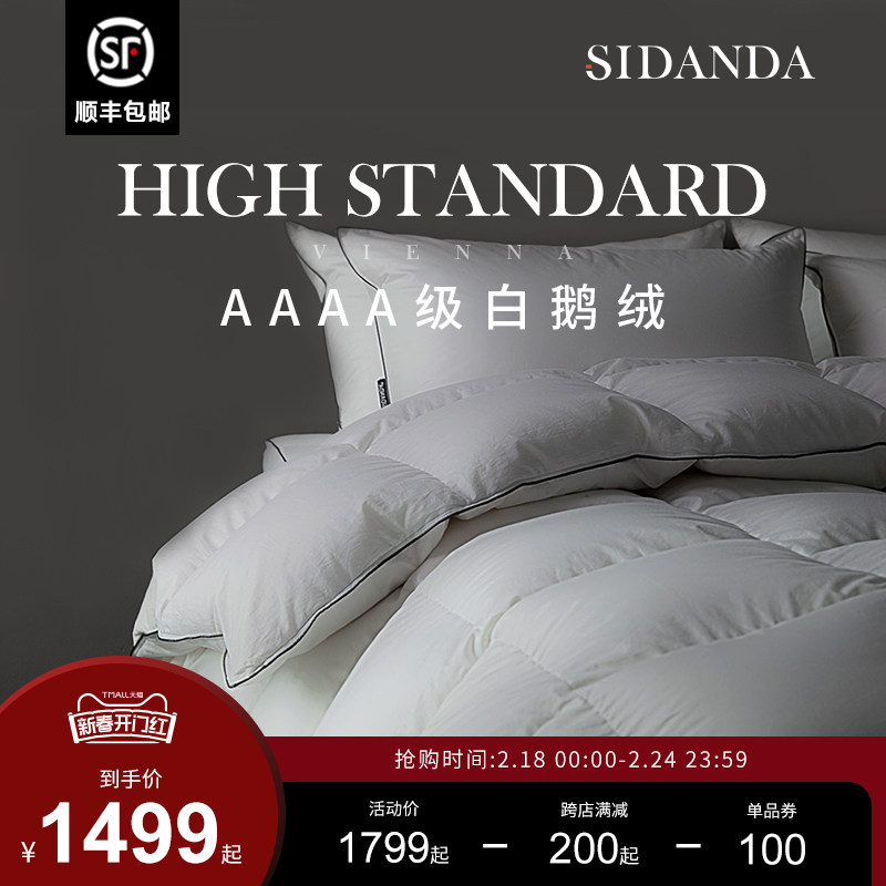 SIDANDA4A羽绒被95白鹅绒冬被春秋被子加厚保暖被芯160支全棉抗菌