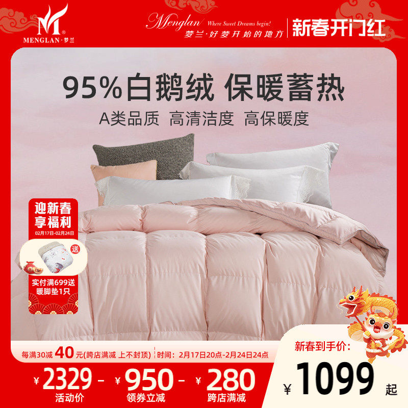 梦兰家纺床上用品95白鹅绒被芯保暖加厚秋冬羽绒被头羽绒被子