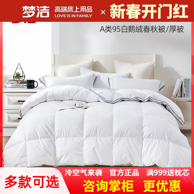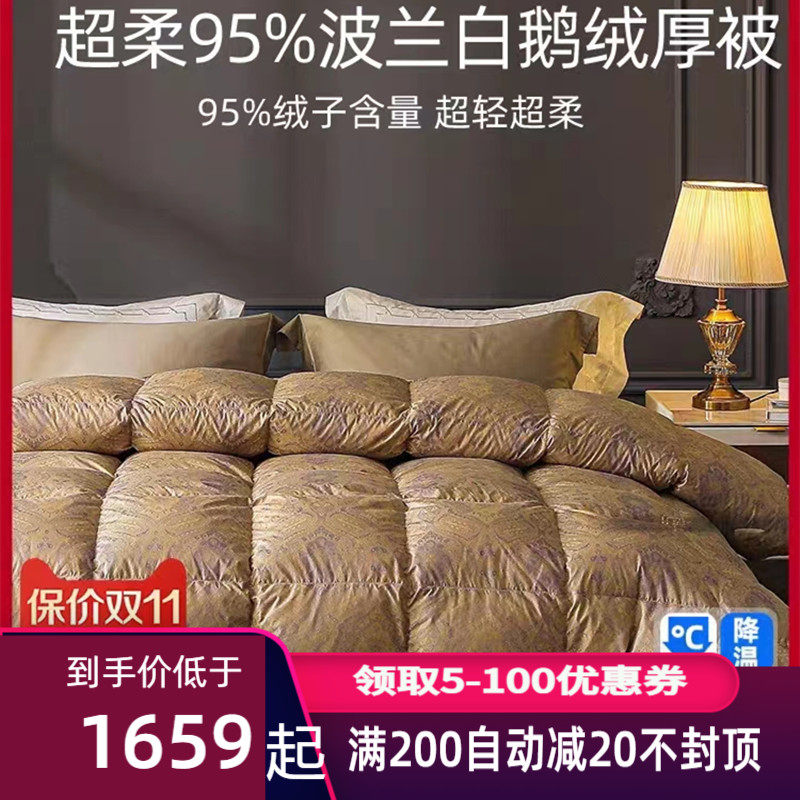 梦洁家纺冬季加厚羽绒被子波兰进口95白鹅绒填充冬季加厚保暖双人