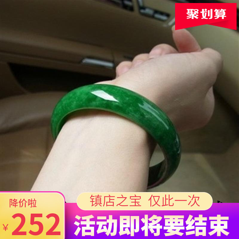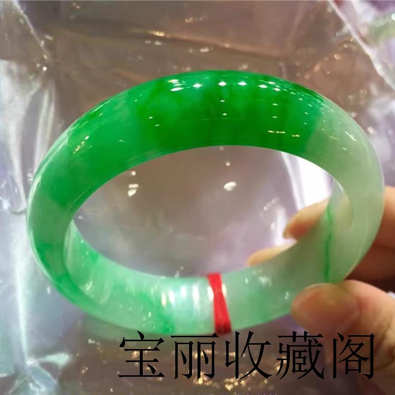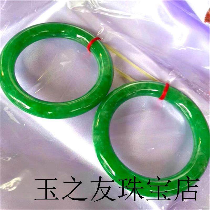缅甸玉石翡翠色手镯冰种阳绿白绿正圈绿飘花糯冰处理春彩玉镯子女