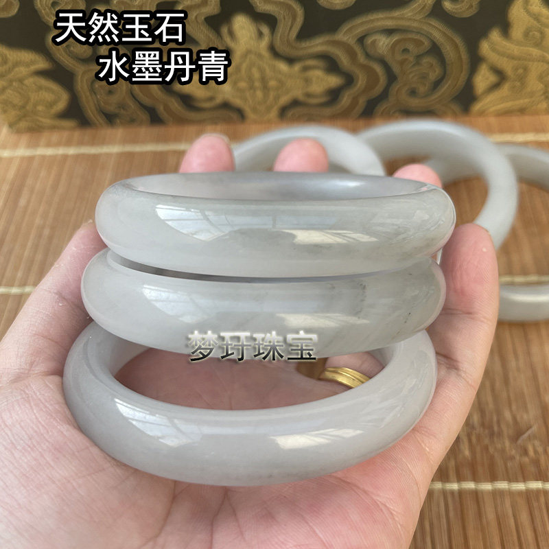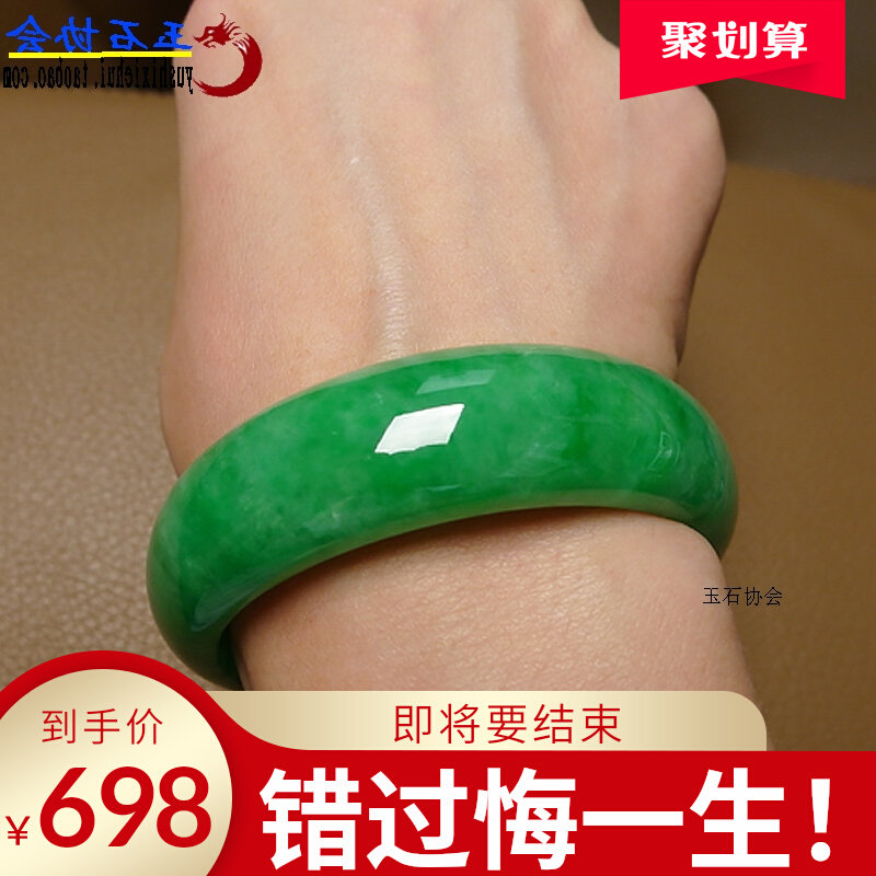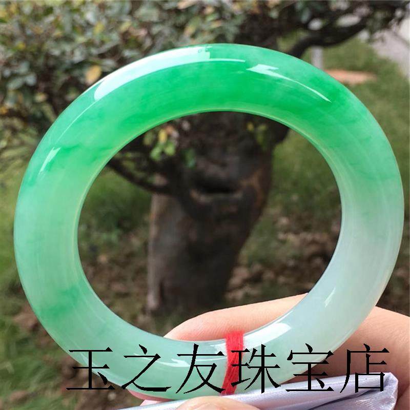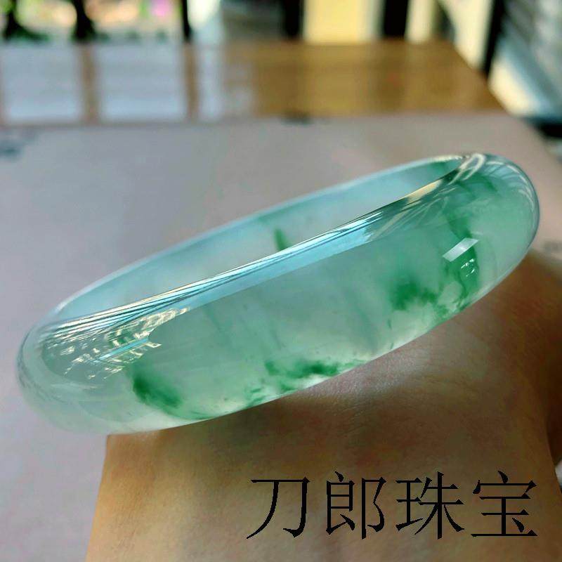 天然缅甸a货真玉手镯子翡翠色玉镯少女水墨飘花带证书旺夫妈妈款