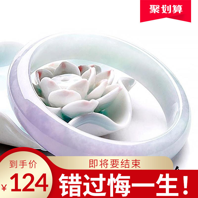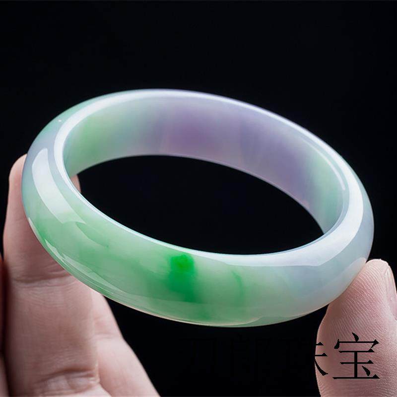紫罗兰翡翠手镯女款平安缅甸飘花春彩玉镯子冰糯种处理飘紫手饰品