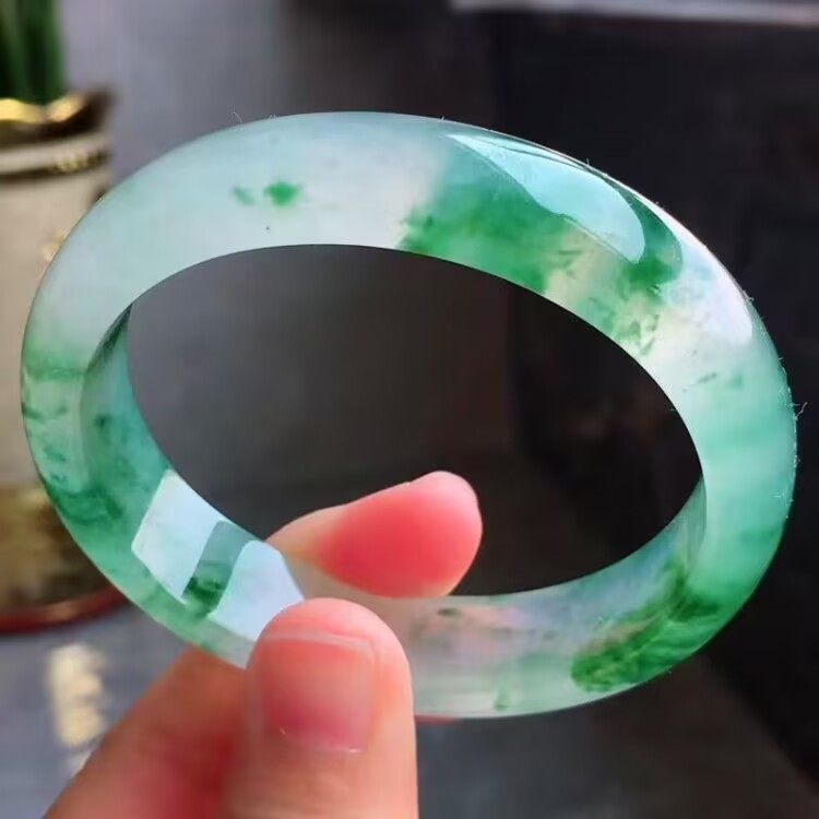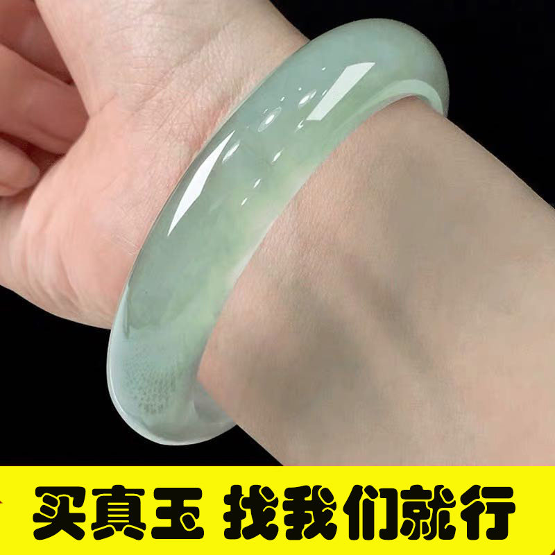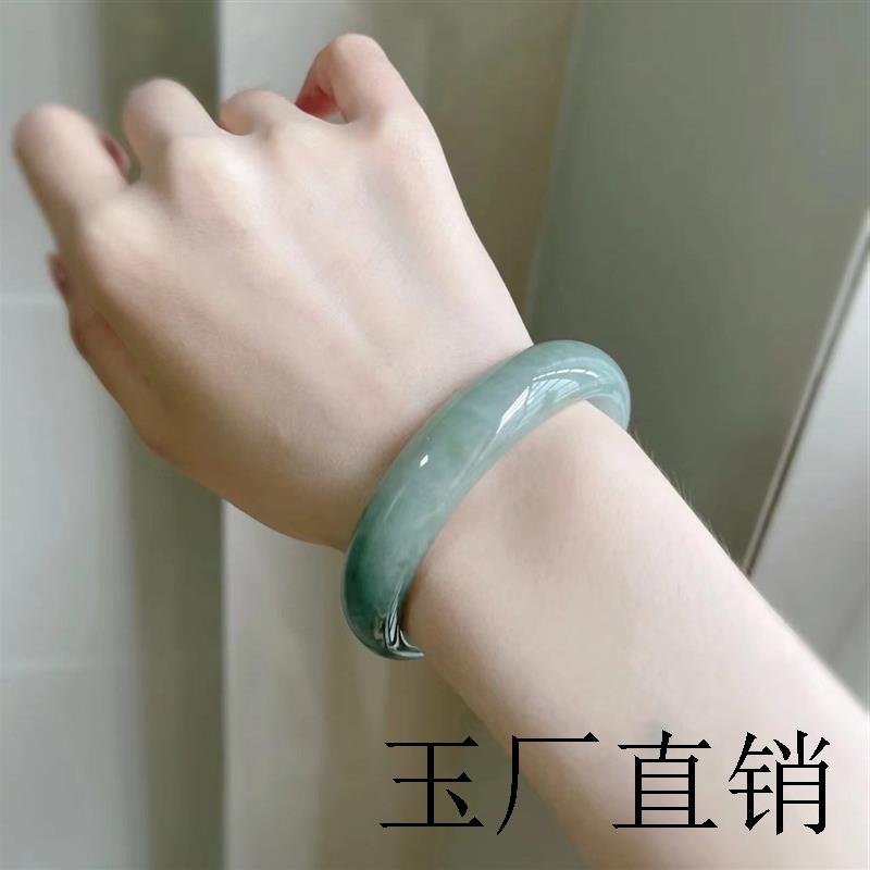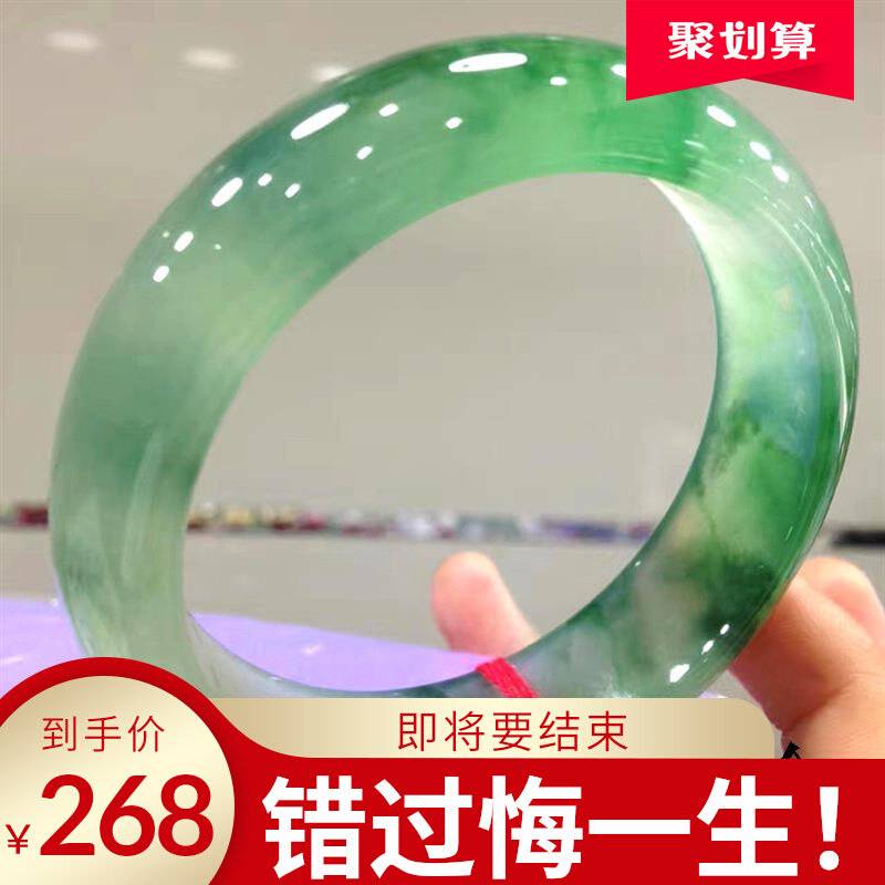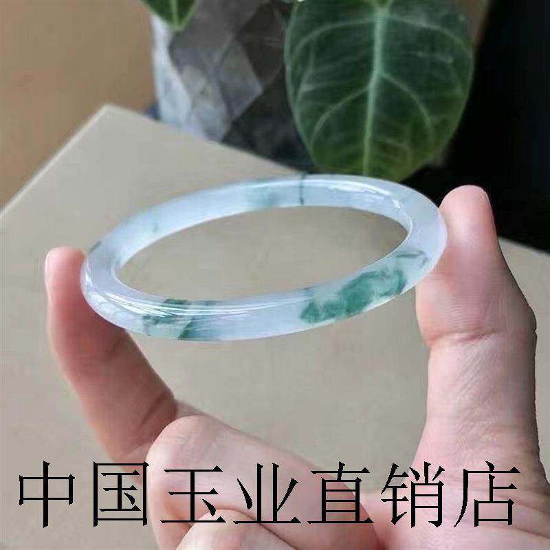 缅甸翡翠色冰种飘花水沫玉手镯女款天然正品少女妈妈旺夫真玉镯子