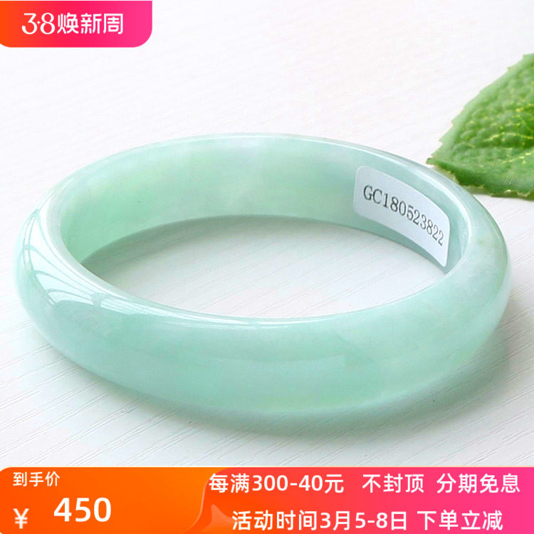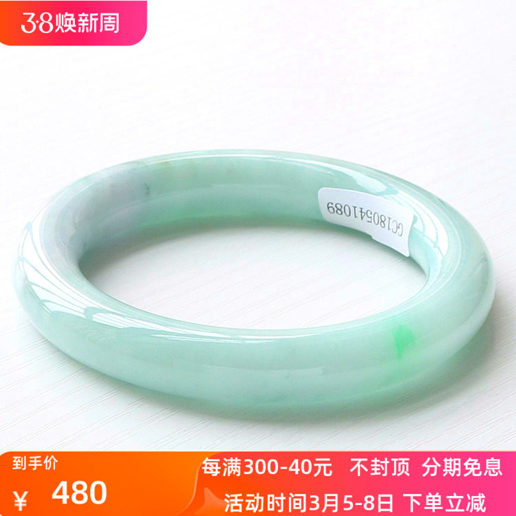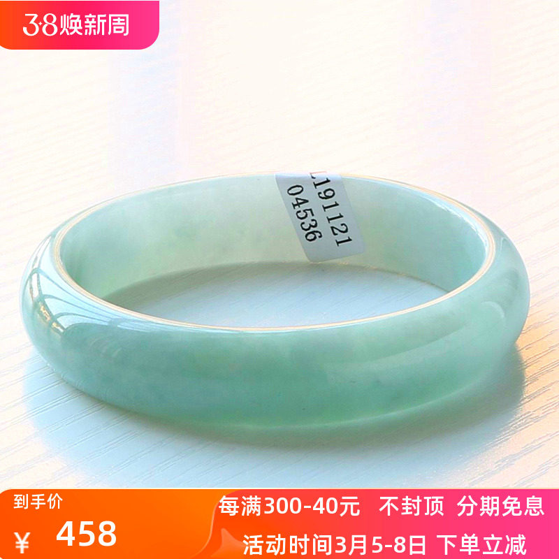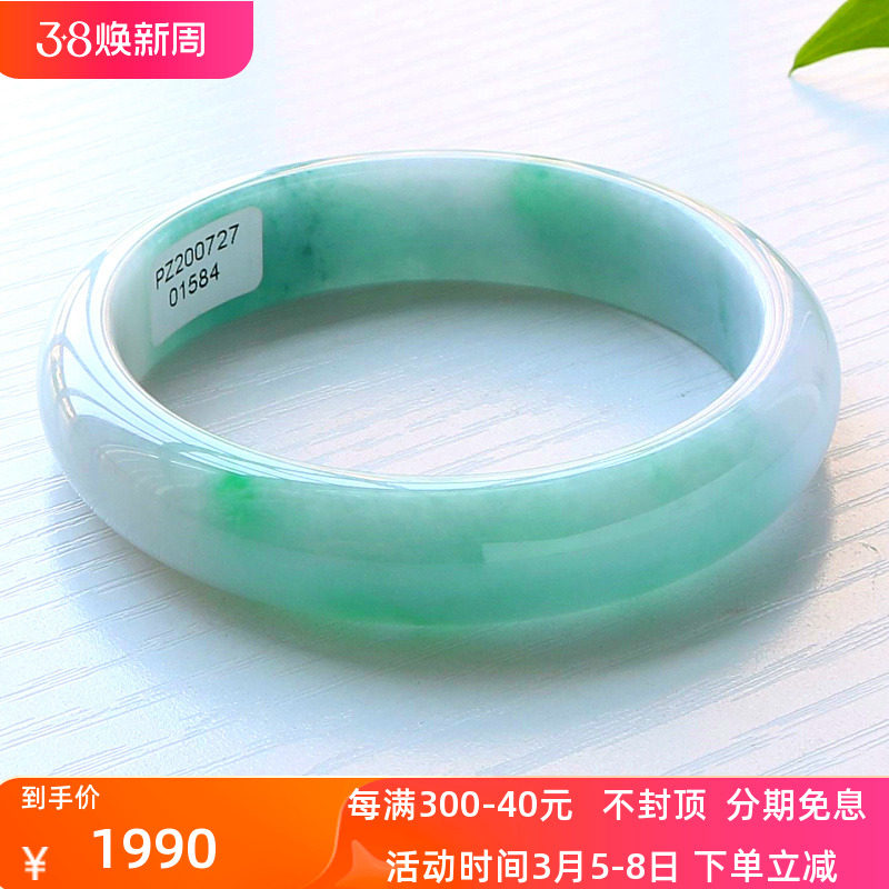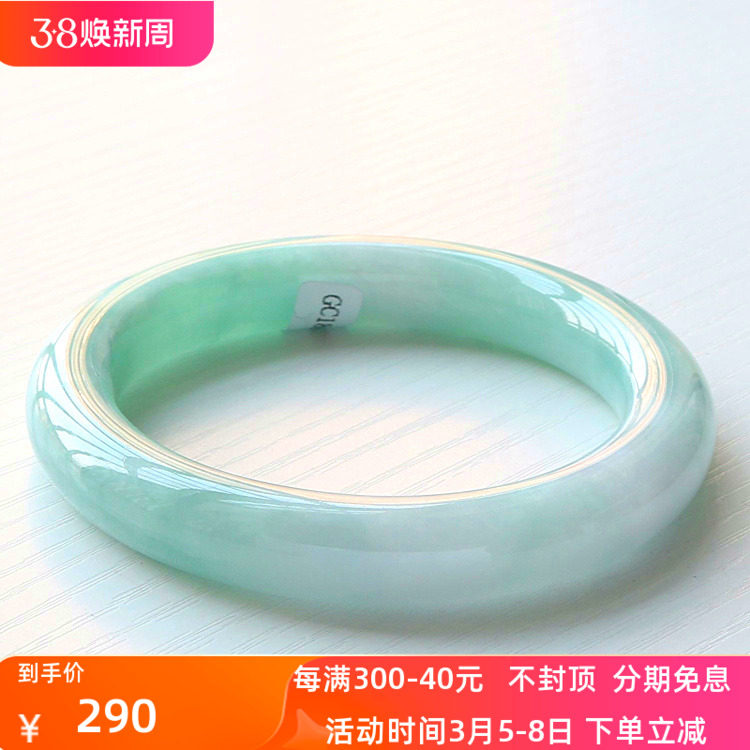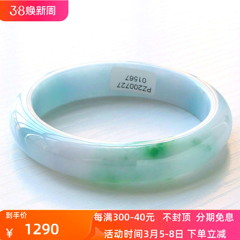 周z六福冰种翡翠手镯飘花正圈女缅甸老坑玉石贵妃镯子飘绿玉手镯