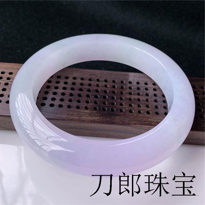 冰糯种紫翡玉镯浅绿飘花紫罗兰珠宝正圈翡翠处理手镯高端镯子手饰