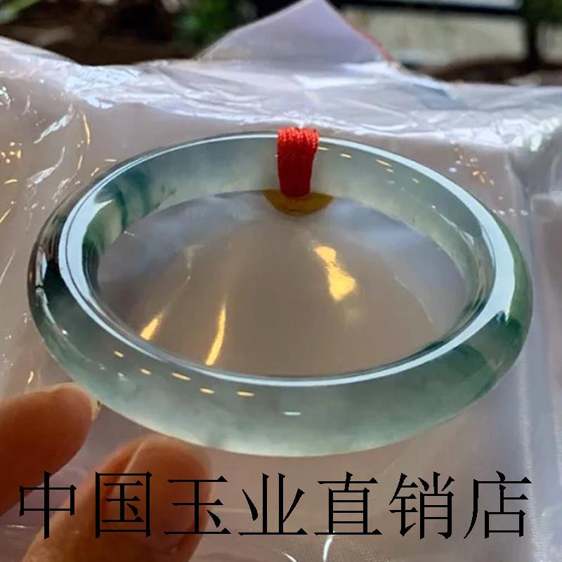缅甸翡翠手镯女晴水料蓝底冰种飘花圆条叮当镯处理贵妃玉镯子证书