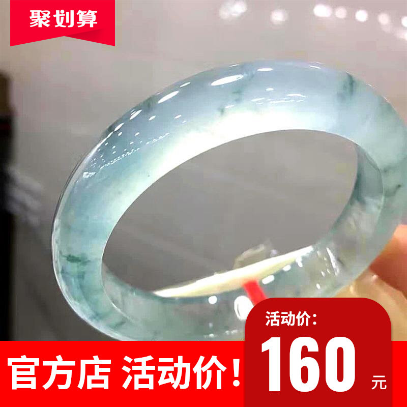 推荐天然A货翡翠蓝水料叮当镯 冰料 手镯女款翡翠镯子饰品A0304