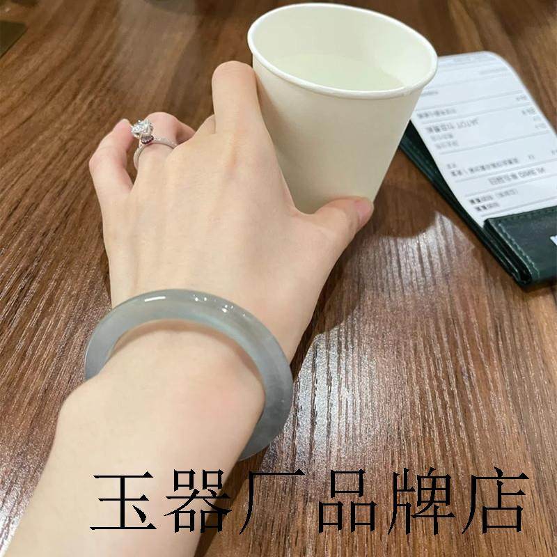 蓝水翡翠色色晴水叮当镯手镯少女年轻款小巧圆条冰种天青冻玉髓镯