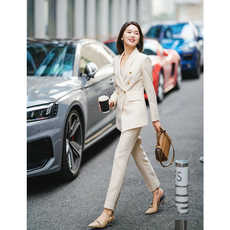 2020新款平安夜女西装工作服外套银行职业女装大码套装修身西服女