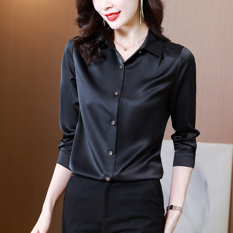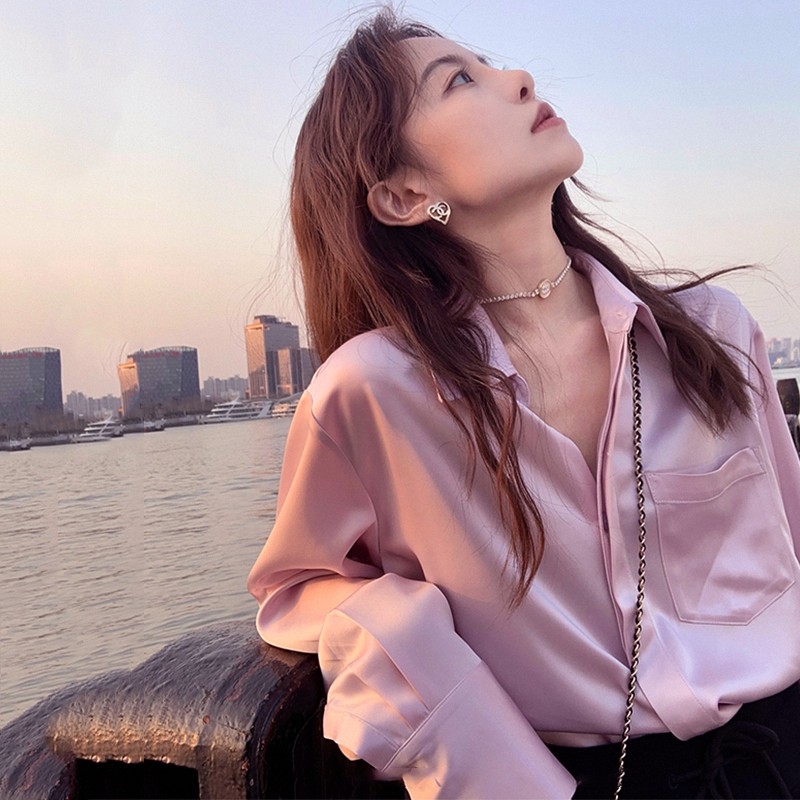 春季女装批新款发高级感醋酸缎面衬衣休闲职业长袖气质宽松衬衫潮