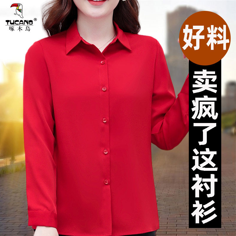 啄木鸟衬衫女职业2023年秋冬新款长袖加绒薄款大码女装工作服衬衣
