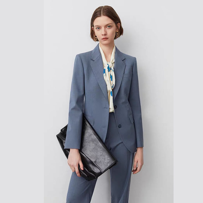 朗姿2023年秋季新款女装法式复古羊毛高级感职业通勤西服气质西装