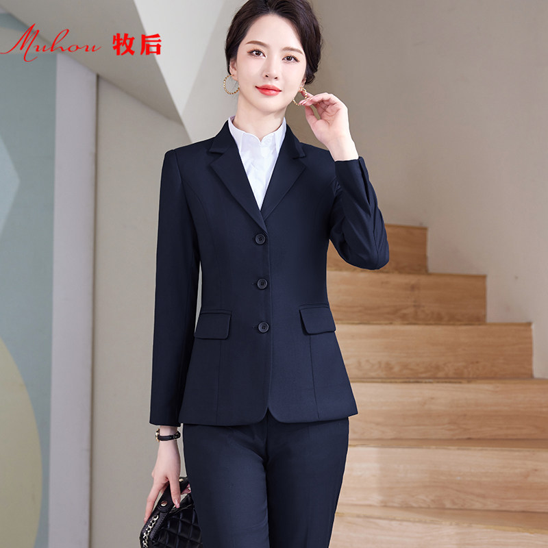 职业西服套装女外套藏青气质女装西装正装工作服春秋季女装正装蓝