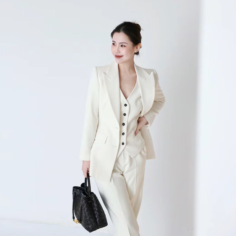秋冬新款月光白职业商务气质西服马甲三件套休闲阔腿裤西装套装女