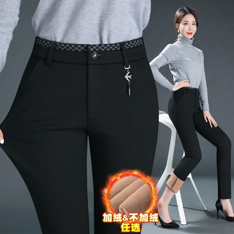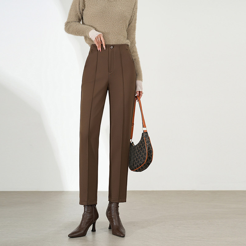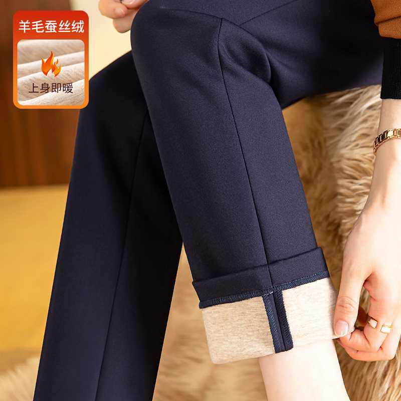 雅思诚女裤加绒西裤女2024秋冬新款高腰直筒裤子冬季职业烟管棉裤