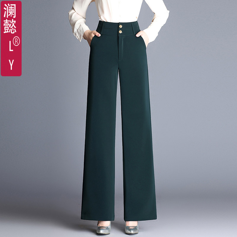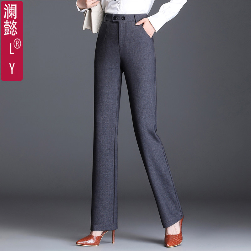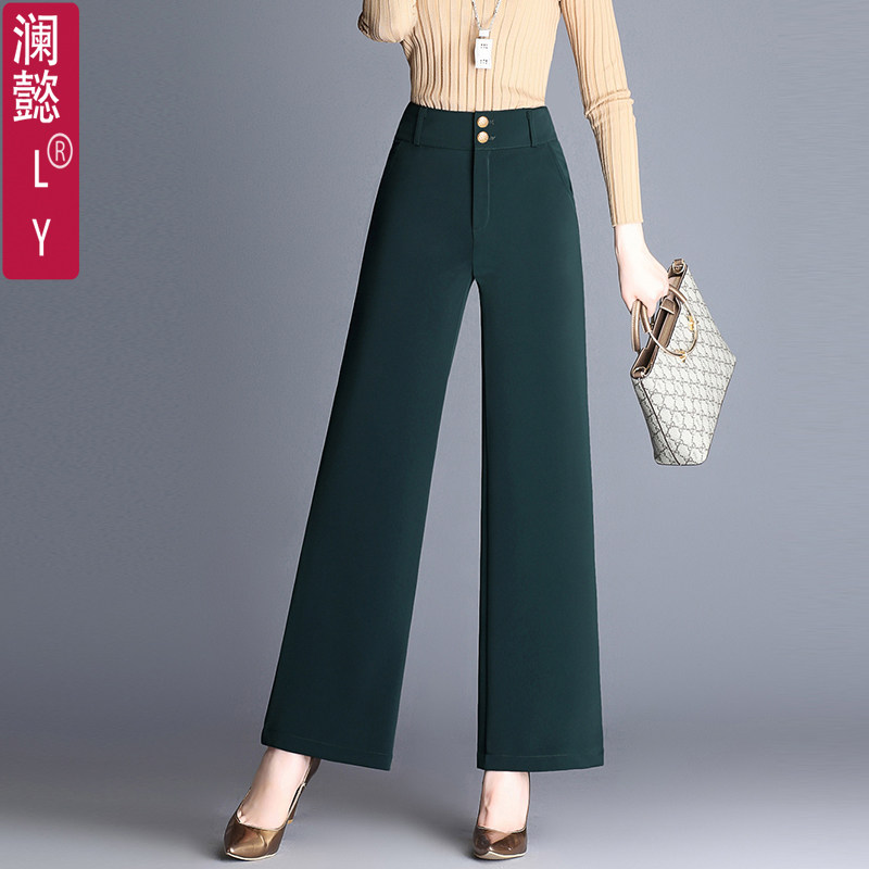 澜懿南韩丝秋冬厚款阔腿裤女九分裤高腰直筒裤西装裤职业女裤