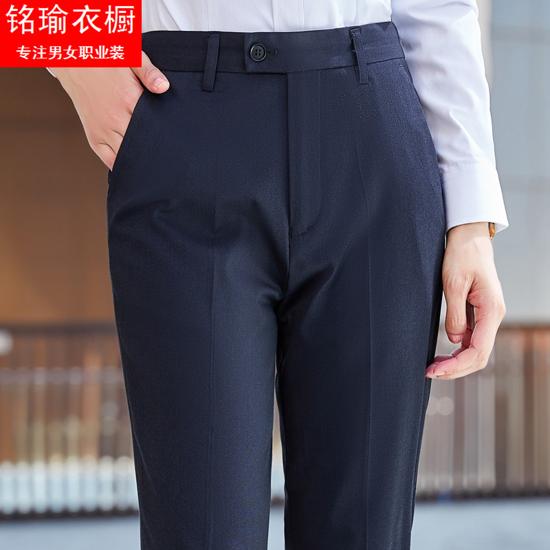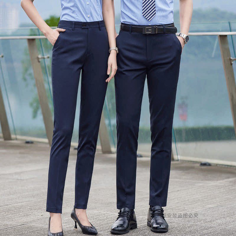 职业女裤春夏新款弹力直筒裤男女同款正装长裤子西裤蓝色显瘦正装