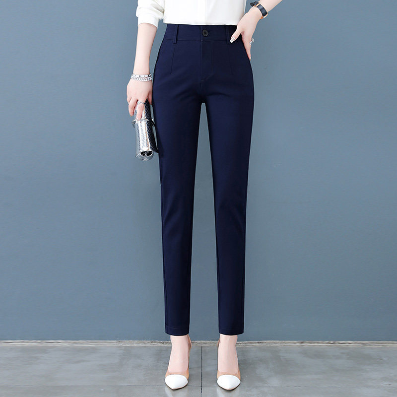 裤子女春秋2023年新款高腰显瘦女裤蓝色小脚休闲裤秋季职业西装裤
