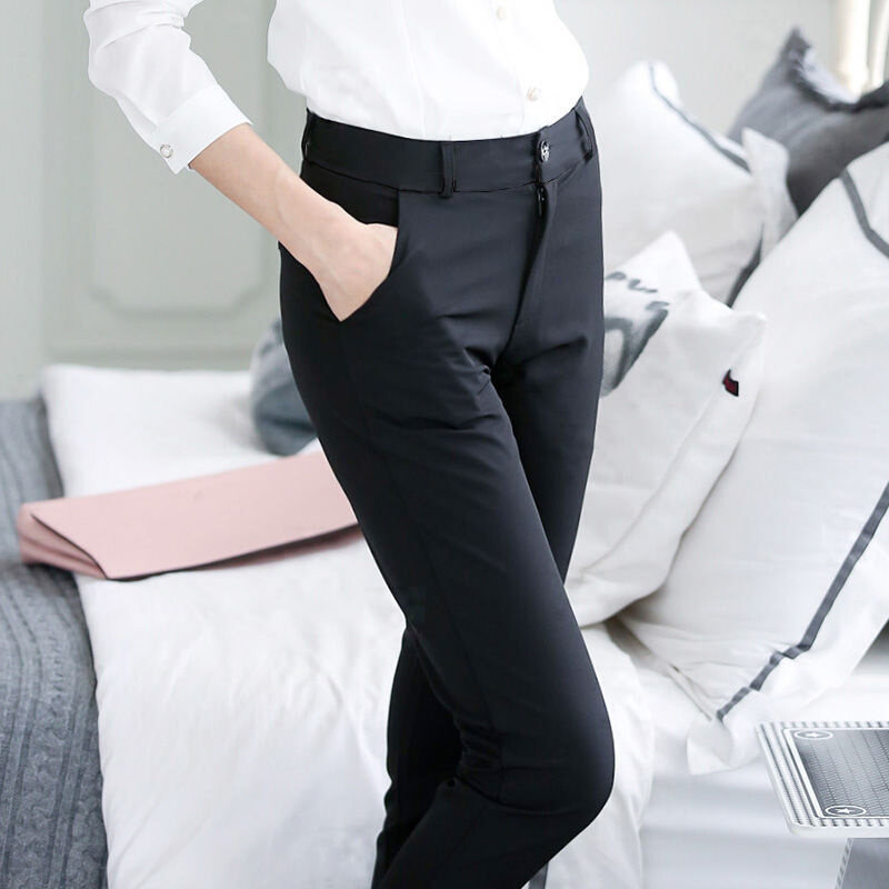 夏季黑色休闲裤女直筒长裤职业西装裤小脚裤铅笔裤女裤子工装裤子