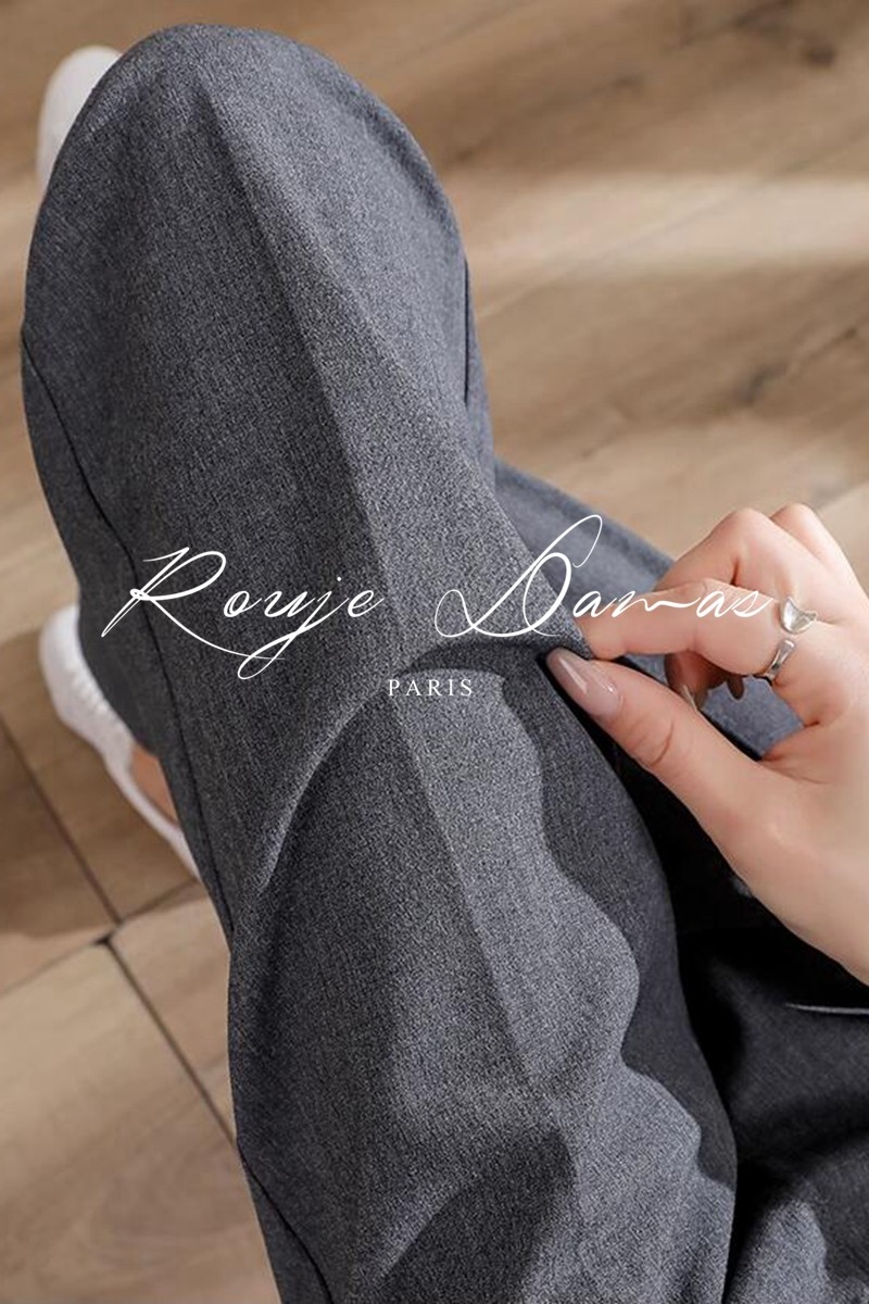 Rouje Damas烟管西装裤女秋冬季正装通勤灰色职业高腰直筒女裤子
