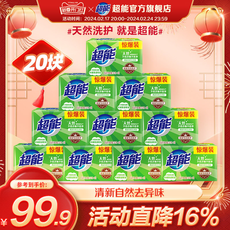 超能洗衣皂柠檬草香透明皂20块家用实惠装肥皂批发官方旗舰店正品