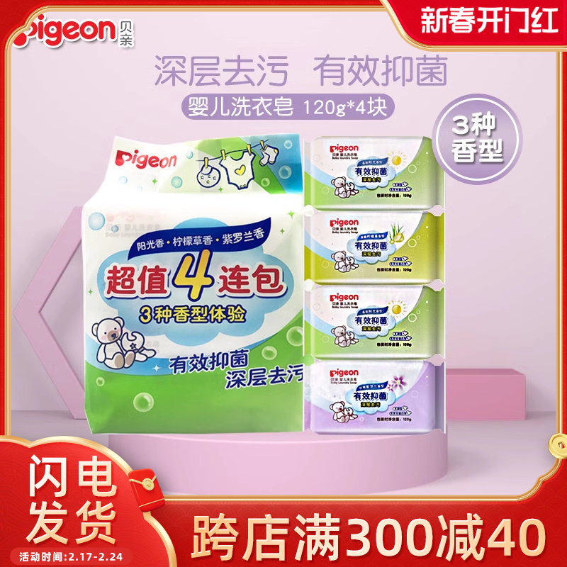 贝亲抑菌洗衣皂儿童内衣皂婴儿肥皂新生宝宝香皂尿布皂120g*4连包