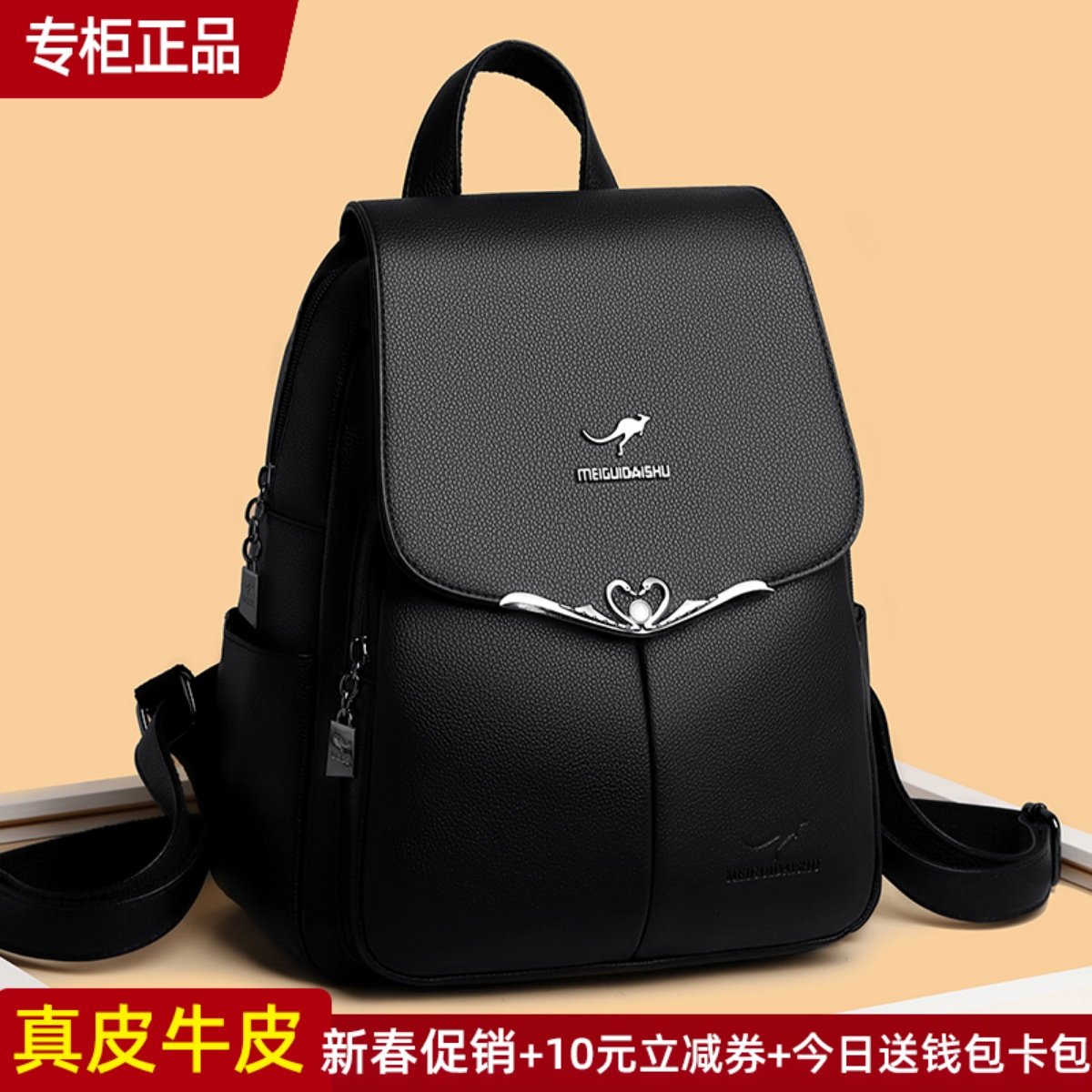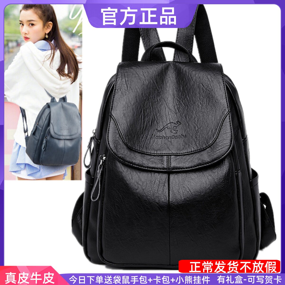 正品袋鼠双肩包女包官方旗舰店2024新款韩国背包女士真皮包大容量