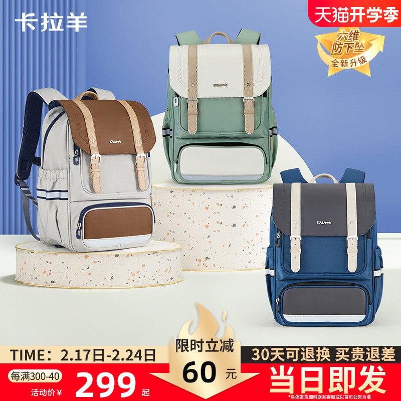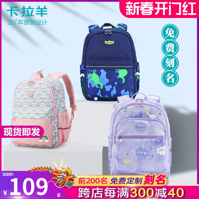 卡拉羊小学生书包女一年级儿童减负护脊背包男 孩女童双肩包女 生