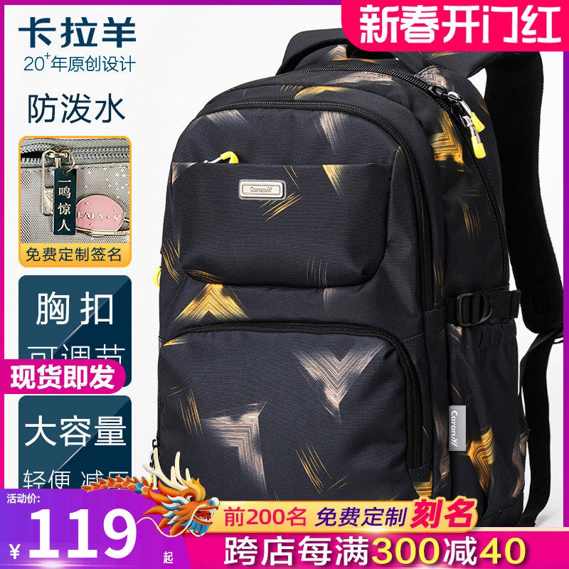 卡拉羊大容量少年中学生书包男韩版双肩包高中时尚潮流校园女背包