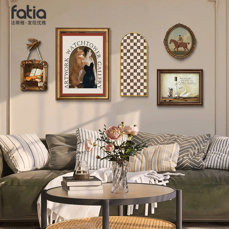 北欧客厅装饰画小众复古风格组合挂画美式轻奢墙画沙发背景墙壁画