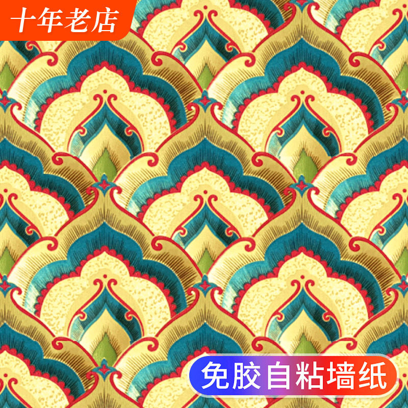 自粘墙纸佛龛墙贴纸自贴金色金黄色佛堂金箔反光新中式背景墙壁纸