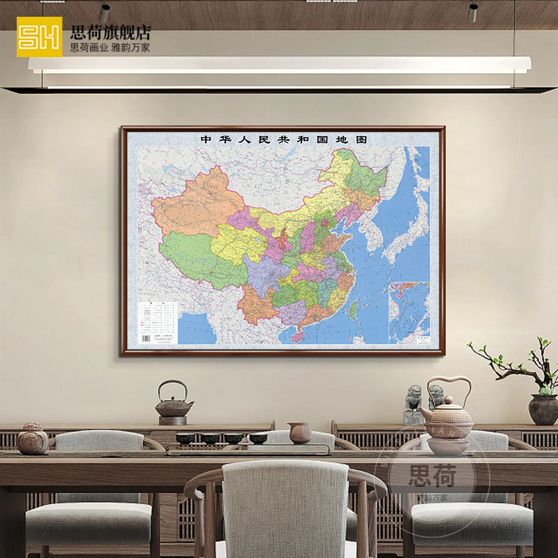 中国世界北京地图2021挂图办公室会议室背景墙面装饰壁画高清定制