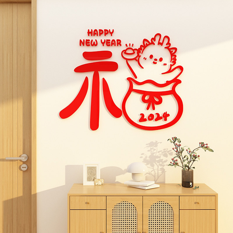 过新年墙贴2024龙年春节客厅电视机背景墙装饰品挂件窗花门贴布置