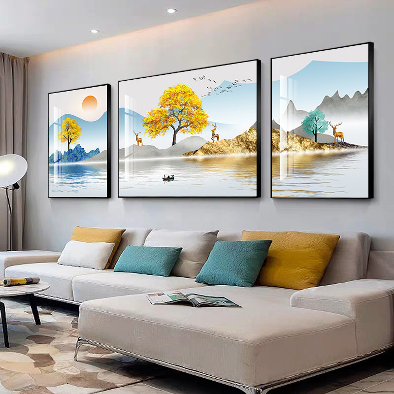 客厅装饰画现代简约新中式沙发背景墙三联挂画山水画轻奢大气壁画