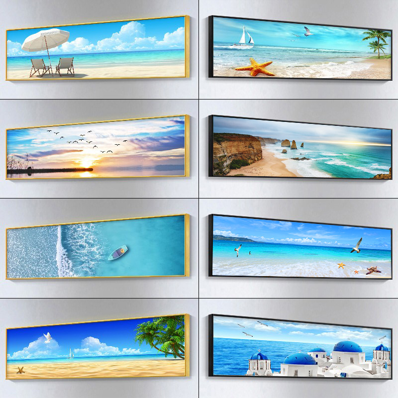 地中海卧室床头背景墙面装饰画新款主卧房间海景挂画酒店客房壁画
