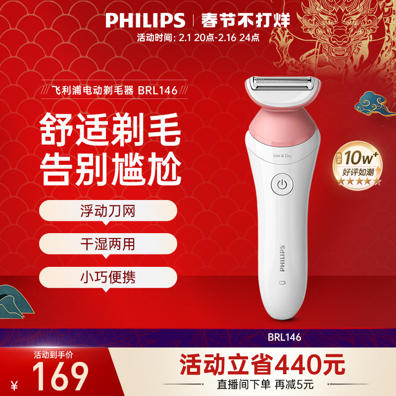 飞利浦家用电动剃毛器BRL146男女专用比基尼腋毛私处脱毛刀刮毛器