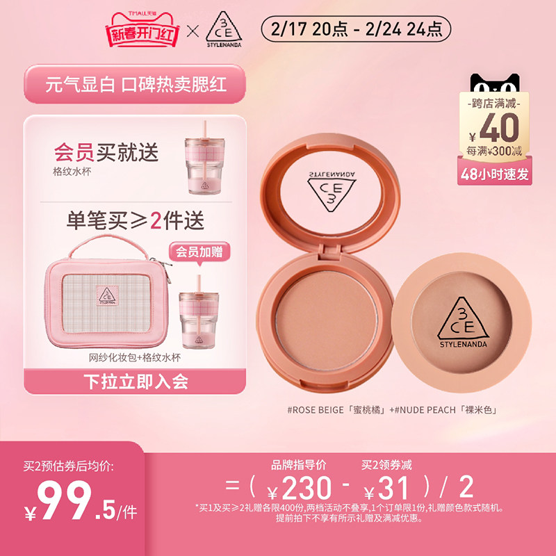 3ce腮红小样delectable ROSE BEIGE蜜桃橘MONO PINK单色腮红分装