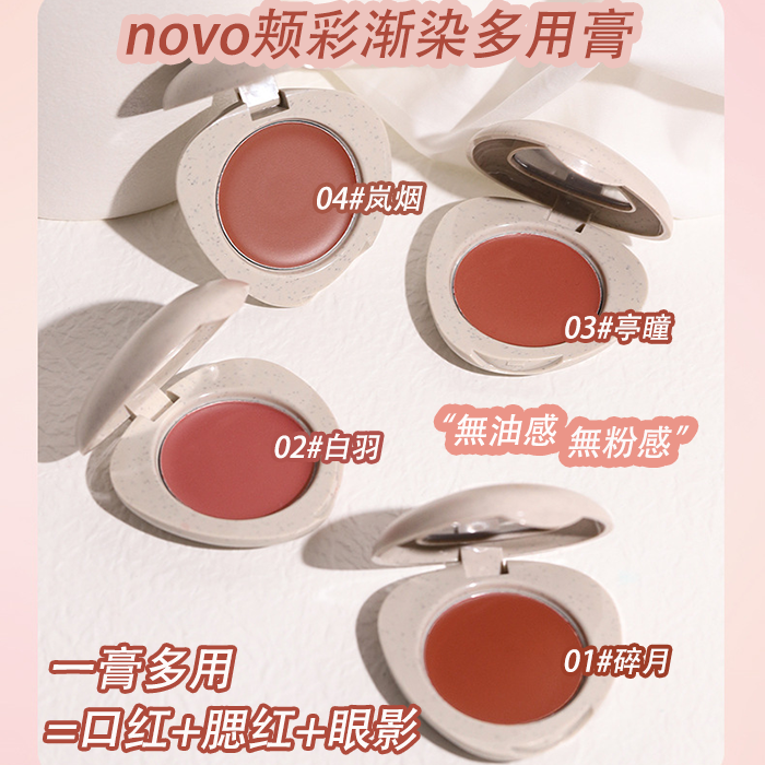 NOVO品牌颊彩渐染腮红多用膏眼影口红纯欲轻薄显色细腻服帖学生党