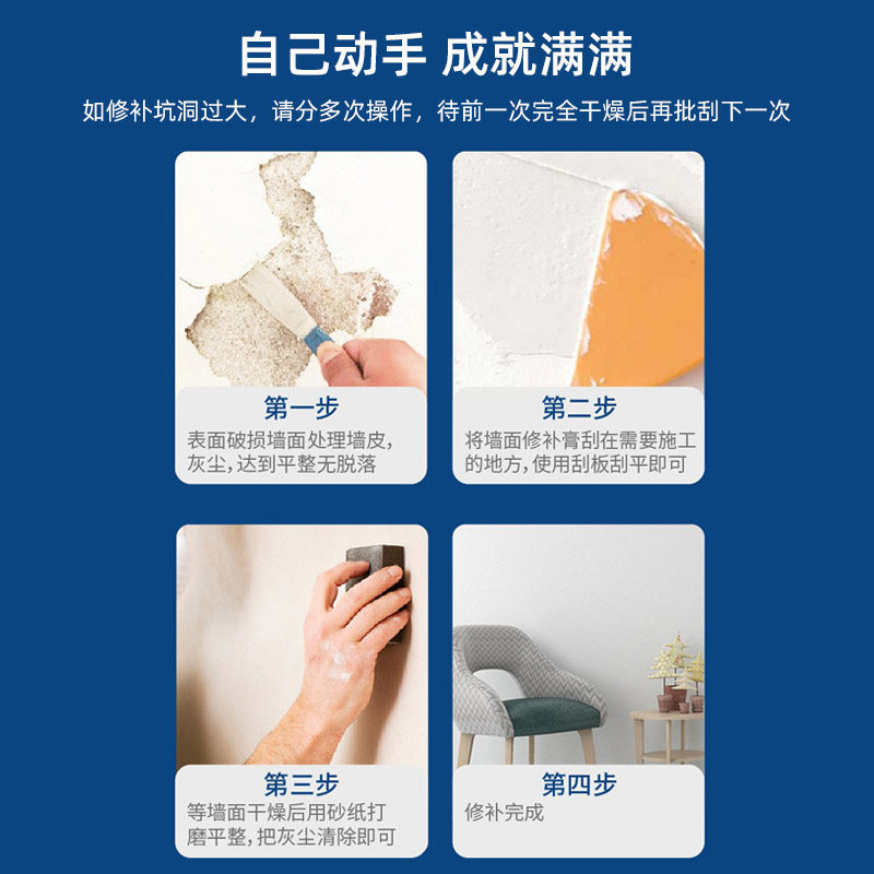 补墙膏墙面修补膏白色乳胶漆墙壁神器墙体墙洞缝隙修复胶泥腻子膏