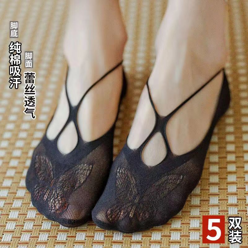 袜子女春秋薄款丝袜纯棉底浅口夏季短筒船袜蕾丝袜短袜隐形ins潮