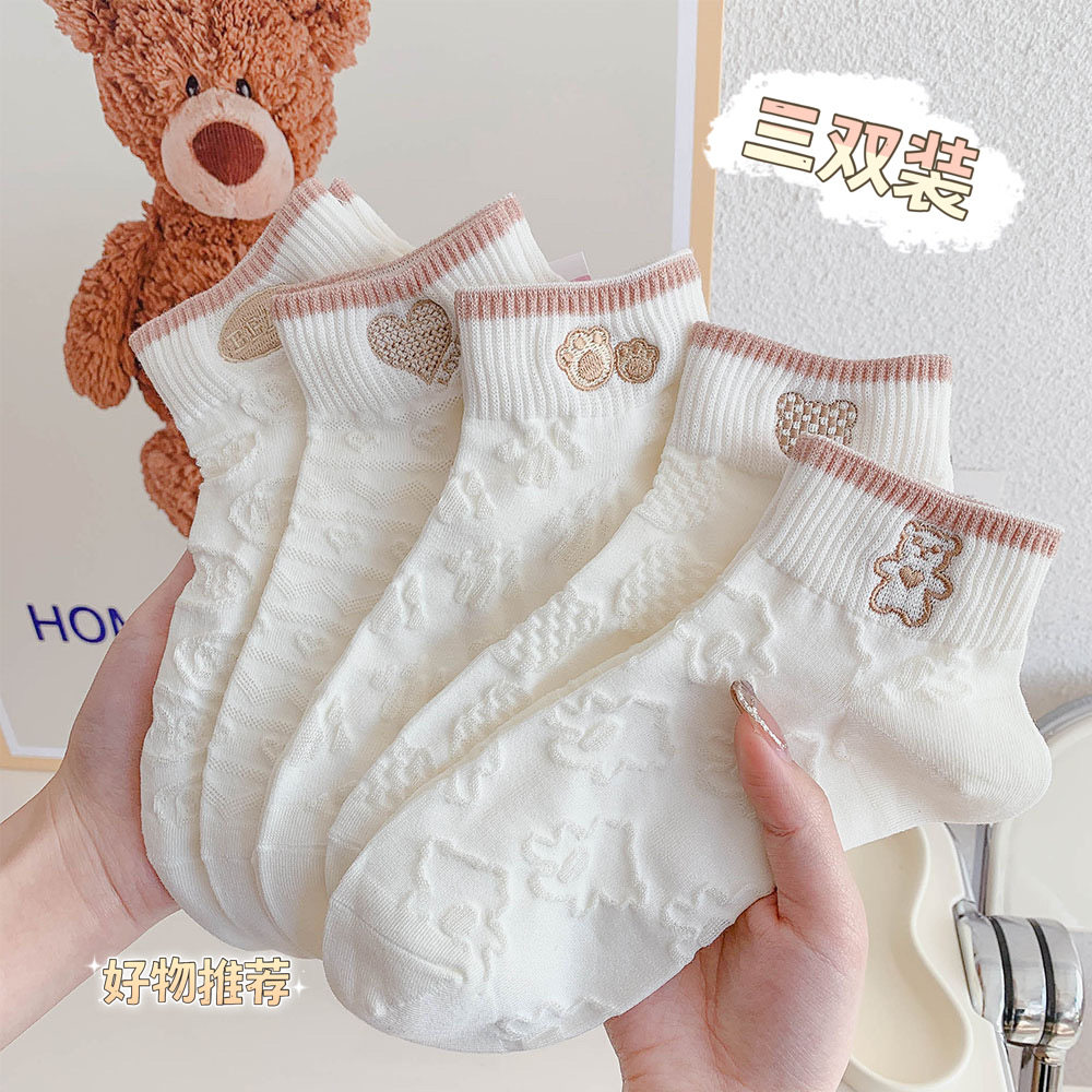 外贸货夏季可爱小熊袜子少女纯棉吸汗透气低帮浅口防滑不掉跟船袜