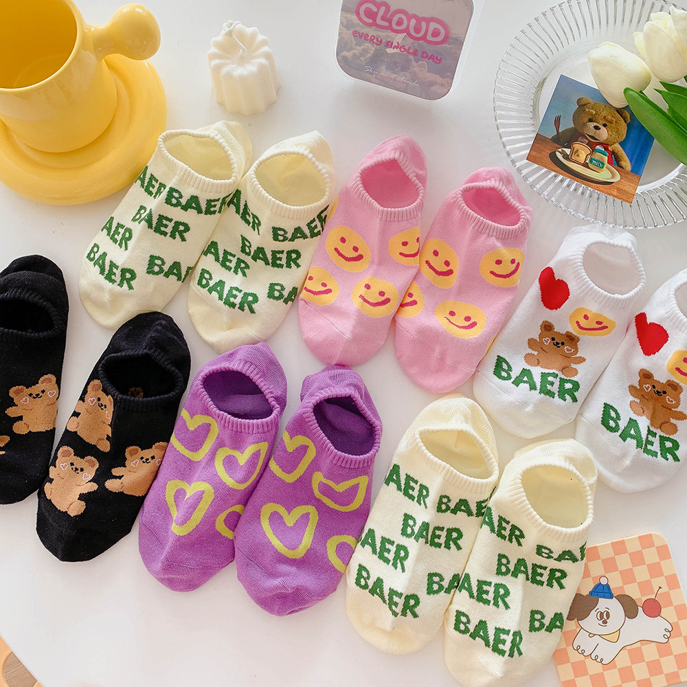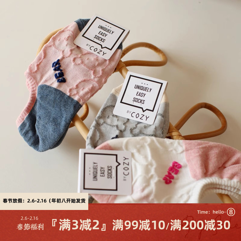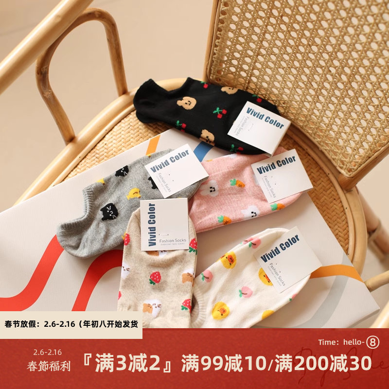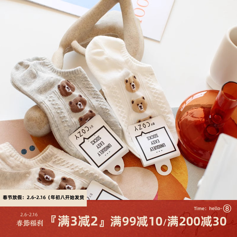 小熊袜子女短袜纯棉夏季薄款潮网红款浅口防滑不掉跟女士船袜夏天