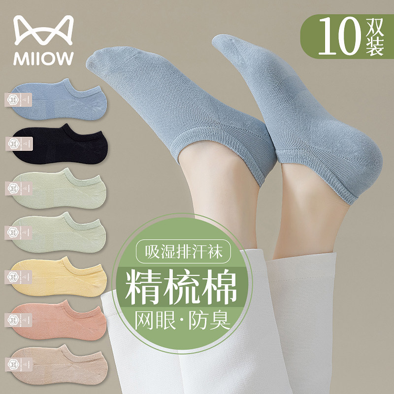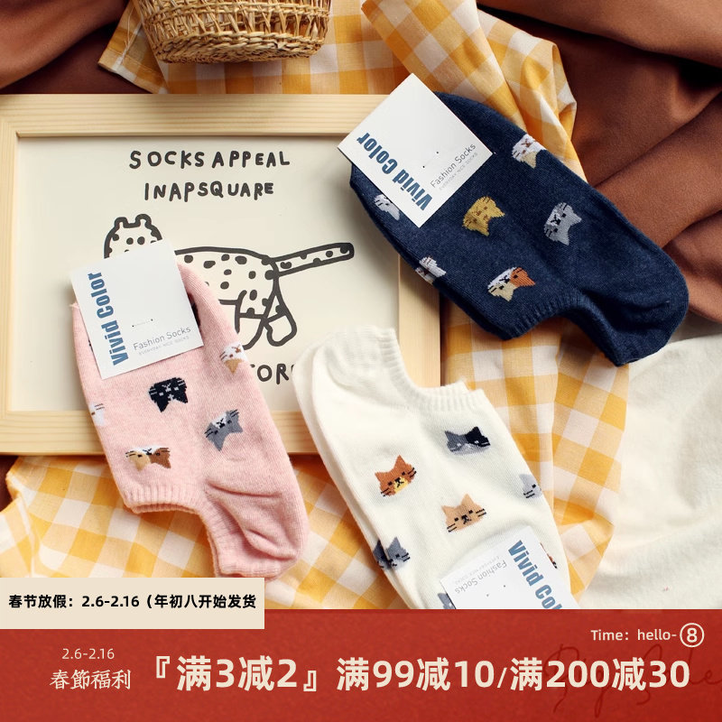 猫人袜子女士船袜纯棉秋冬季抗菌防臭防滑不掉跟隐形短袜女全棉