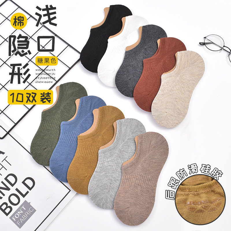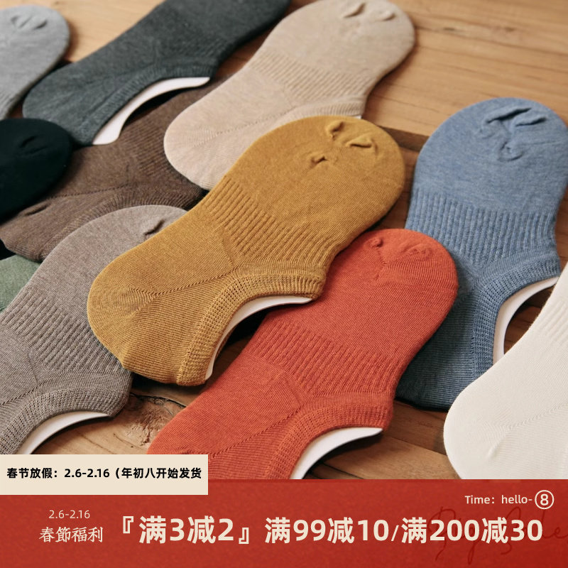 拾袜记半隐形袜子男士船袜夏季薄款纯棉防臭吸汗硅胶防脱透气短袜