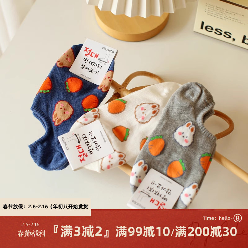 不会丢的袜子 卡通插画船袜女日系可爱波点兔子防滑浅口短袜夏季