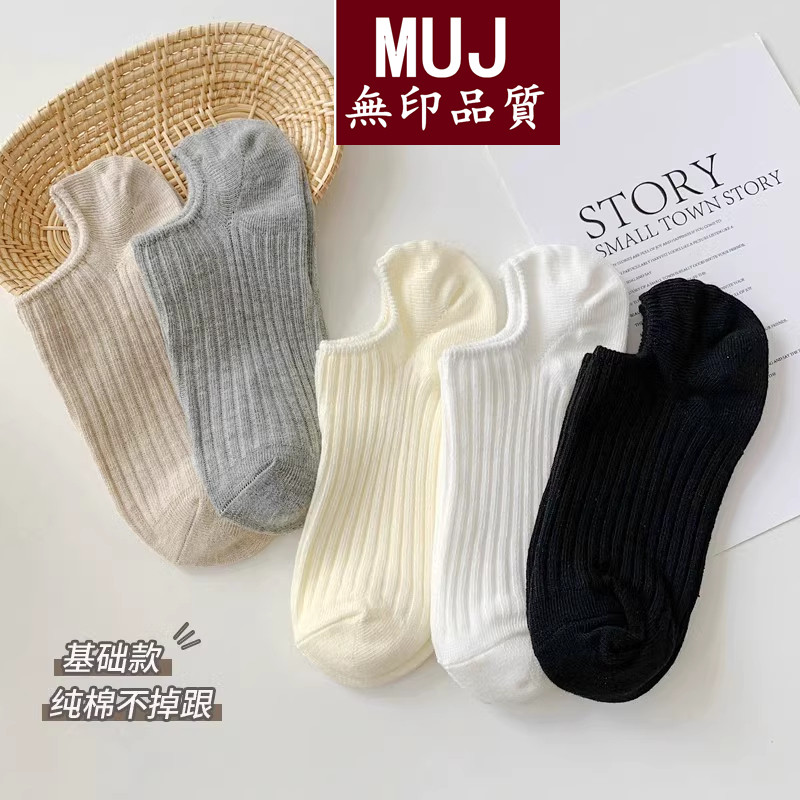 日本MUJl无印纯棉袜子女船袜防滑不掉跟硅胶浅口隐形短袜秋冬薄款