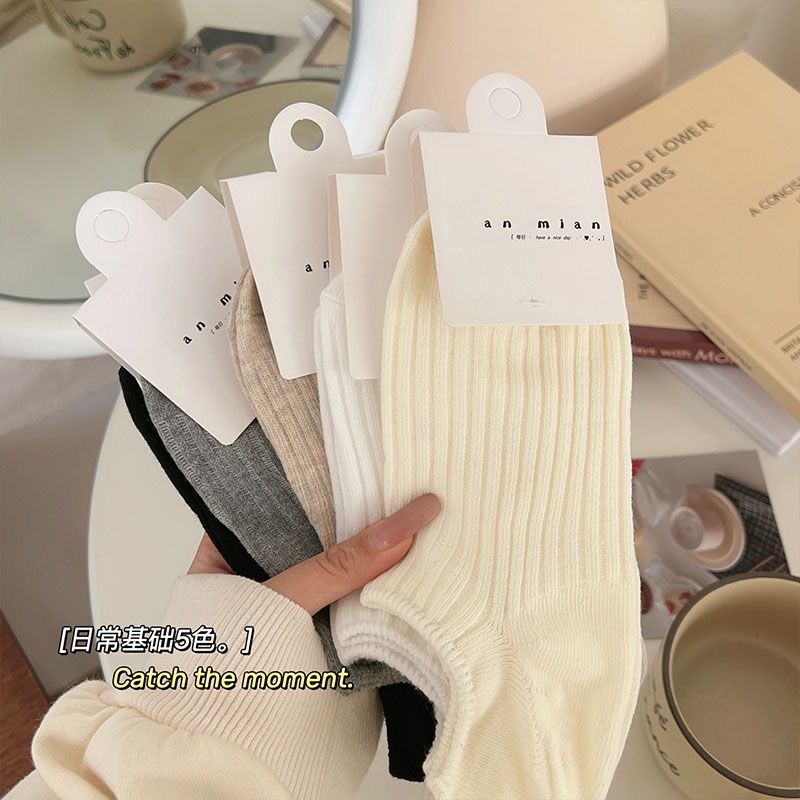 5双装袜子女士夏季短筒纯棉袜双针全棉运动袜吸汗白色基础船袜ins