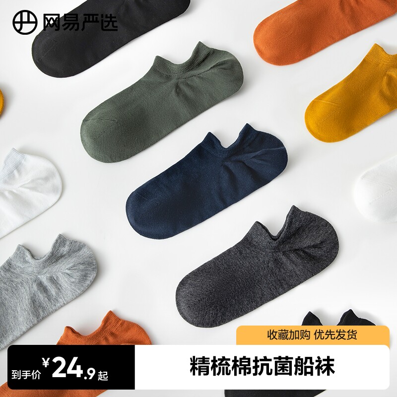 网易严选精梳棉抑菌短袜男浅口隐形船袜女防臭吸汗透气夏中筒袜子